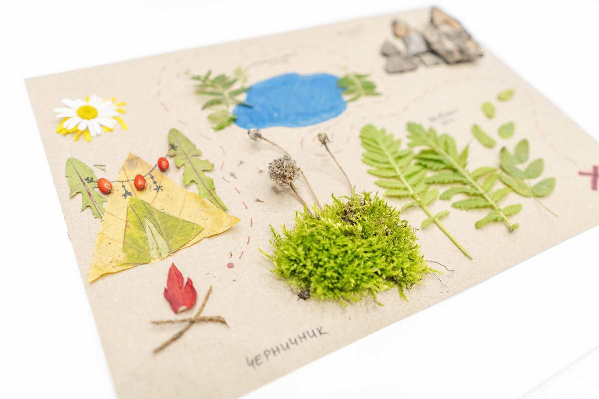 Как видите, все просто. Нужно найти сухие листики, травинки, цветочки, взять лист картона, фломастеры, клей или двусторонний скотч и придумать маршрут (в рамках вашей коробки), по которому отважные путешественники отправятся на поиски приключений.