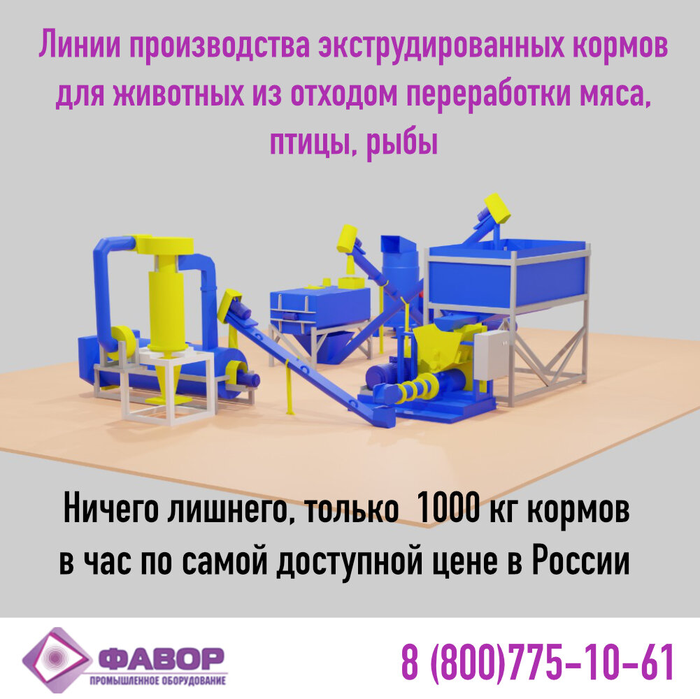 Наши линии производства экструдированных кормов и кормовые экструдеры продолжают быть лучшими в РФ по соотношению цена-качество. Подробную информацию об производимом нашей компанией оборудовании для производства экструдированных кормов можно на специализированных интернет ресурсах. Сайт о технологии экструдирования и статейный материал https://ekstruder1.ru Есть вопросы звоните 7 (917) 330-46-41 или заказывайте обратный звонок на сайте.