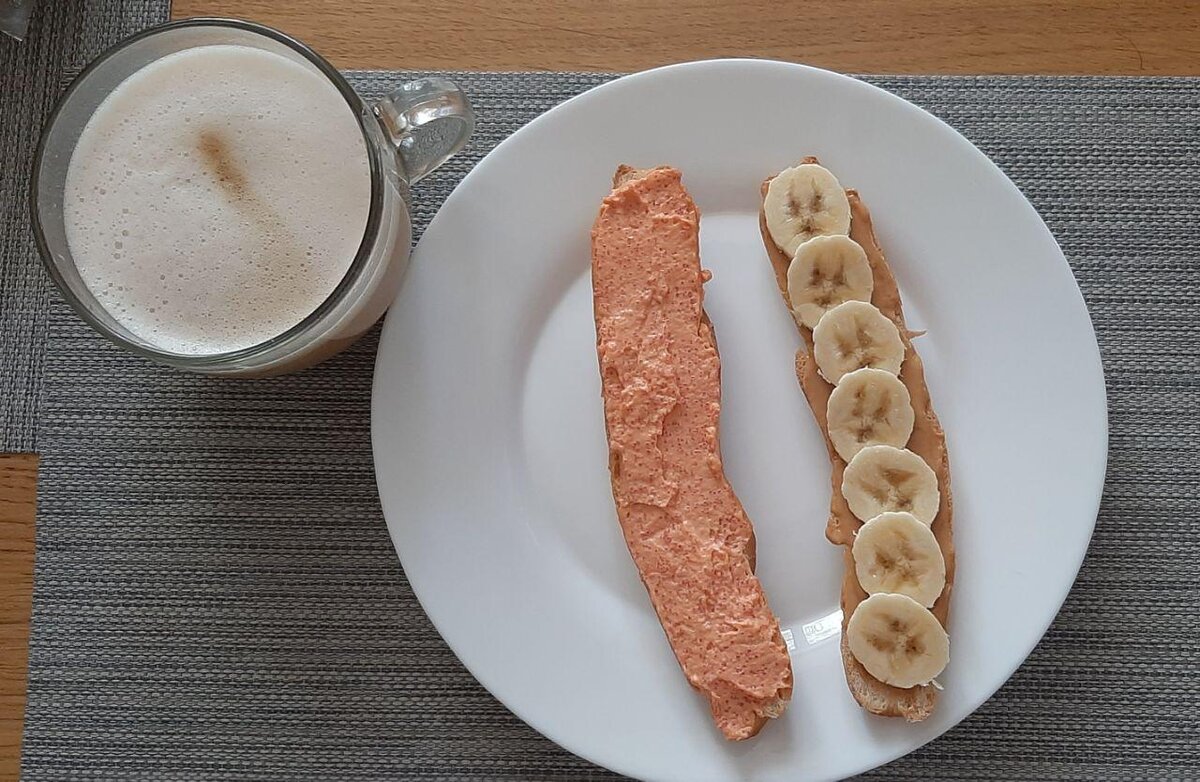 Мой завтрак без изменений, лишь захотелось капучино. Молоко я всегда покупаю низколактозное. Сахар не использую, только на сахарозаменителе пью.