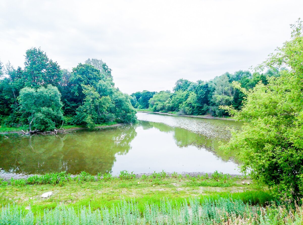 Когда мы подошли к пруду, прямо от берега взлетела цапля. Отлетела от нас на безопасное расстояние к противоположному берегу и села там прямо на воду.