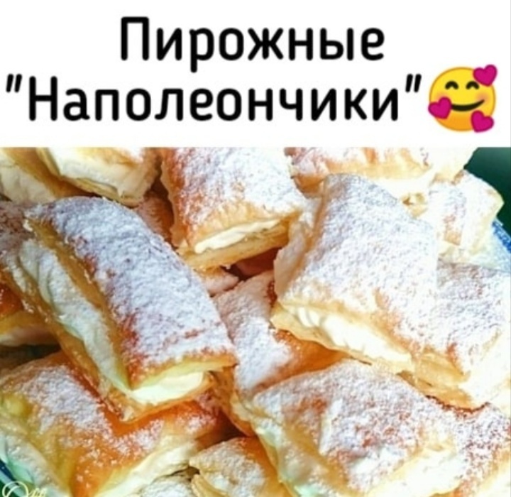 Ингредиенты: готовое слоеное бездрожжевое тесто-1 упаковка; Для крема: сгущенное молоко- 1/2 банки; сливочное масло-150 гр; Сахарная пудра ⠀ Способ приготовления: ⠀ Слоеное тесто разложить на столе, дать разморозиться... немного раскатать (можно не раскатывать), затем разрезаем тесто на кусочки. Выкладываем на противень на пергамент и выпекаем при 200 гр минут 15-20. Еще не совсем остывшие слойки разделяем на две (с помощью ножа,когда остынут сильно крошатся) половинки. На нижнюю часть наносим готовый крем из взбитого масла и сгущенки, накрываем верхней частью. Посыпаем сахарной пудрой! Вот и все! Чудесное пирожное со вкусом "Наполеона" готова!