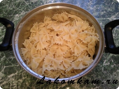 Макароны отвариваем в кипящей воде. Воду сливаем.