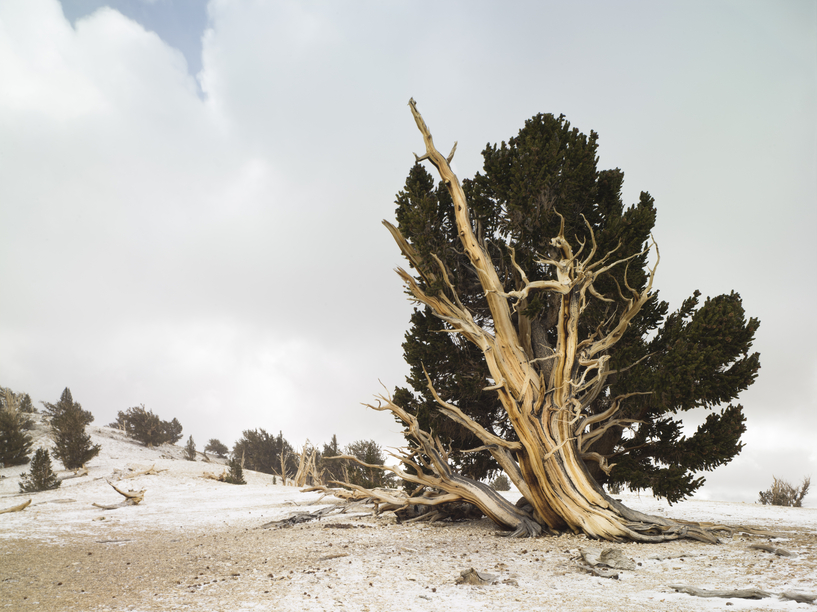 Самое старое дерево на Земле растет в Калифорнии. Оно появилось на свет на несколько веков раньше египетских пирамид, когда только расцветала шумерская цивилизация и, возможно, начинал строится Стоунхендж. Это было в XXIX веке до нашей эры. Возраст Мафусаила, так в честь библейского праотца нарекли дерево, 4 846 лет! Оно относится к виду Сосна остистая - Pinus longaeva. Мафусаил растет на высоте более 3 000 метров над уровнем моря на склоне горного хребта White Mountains в Национальном парке Inyo National Forest. И у него уже появился конкурент. Ученые, работающие в парке, в прошлом году подсчитали возраст еще одной сосны - 5 062 года! У дерева пока нет имени и, если данные подтвердятся, то мы сможем увидеть живого современника начала нашей цивилизации, первых царей Древнего Египта и сотворения мира по календарю майя. Кроме того, это будет самый старый на Земле живой организм! И это далеко не единственное древнее живое дерево здесь. Так получилось, что 8 из 10 самых старых деревь
