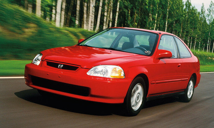 Honda civic . Для тех, кто хочет «гоночку» по дешевке Еще один японский «одноклассник» Golf — Honda Civic. Но этот вариант больше подойдет для любителей погонять. Вряд ли 1,4-литровая версия заставит ваше сердце биться чаще, но есть мощнее. Студент, который в 99% случаев возит себя и свою девушку, смело может выбирать «трехдверку» либо вообще купе. Машина вполне ремонтопригодная, но, к сожалению, не может похвастаться крепким кузовом. Найти экземпляр середины 1990-х без малейшей ржавчины сложнее, чем Almera с «автоматом». Civic — большой выбор кузовов. Есть хетчбэки (3 и 5 дверей), седан, универсал и купе. В данном ценовом диапазоне присутствуют два разных поколения модели. Подавляющее большинство Civic — бензиновые. Многие вообще думают, что дизельных не бывает. В общем, если найти ухоженный VTEC и крепкий кузов, можно с ветерком возить девочек из общежития в универ. BMW 3-series e36. Один из вариантов для тех, кто хочет понтов и катать девушек. Это идет в разрез с утверждени