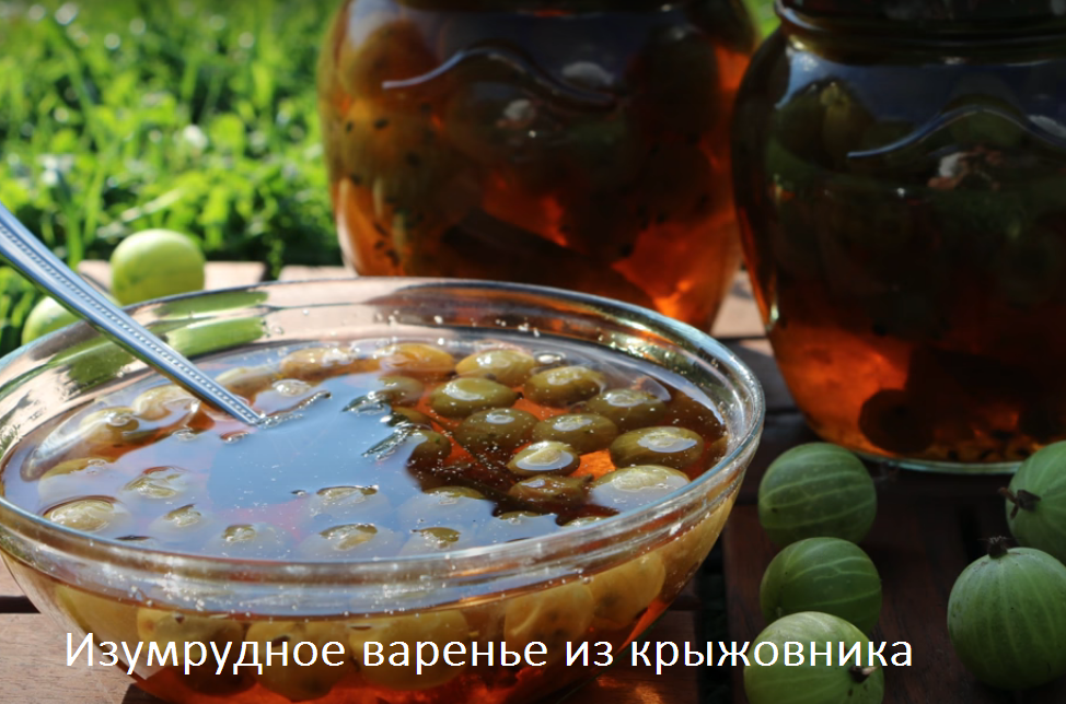 Изумрудное варенье из крыжовника. В кастрюлю налить воду, после закипания поставить на медленный огонь, закрыть крышкой томить листья 15 минут. Очистить крыжовник, помыть, наколоть зубочисткой в 3 местах каждую ягоду крыжовника. Процедить вишнёвый настой от листьев, насыпать сахар, поставить на плиту, перемешивая довести до кипения. Аккуратно заливаем половником сироп на крыжовник, постепенно прогревая крыжовник и он не лопнет, оставить ягоды на 5-6 часов. Довести до кипения на медленном огне перемешивая, после закипания варить 2-3 минуты, снять с плиты оставить варения на 5-6 часов. Довести до кипения на медленном огне перемешивая, после закипания варить 1-2 минуты, снять с плиты оставить варения на 6 часов. Положить вишнёвые листья 10 штук (из которых мы делали сироп) в варения, довести до кипения, на медленном огне, помешивая, варить 3-4 минуты. Вынуть листья из варения. Закатать в банки. Рецепт: Крыжовника - 2 кг. Вишневые листья - 2 горсти. Вода - 5 ст. Сахар - 2 кг. Приятного