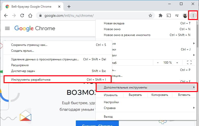 Чтобы активировать эту функцию, посетите веб-страницу и откройте консоль разработчика. Чтобы открыть консоль в Google Chrome, нажмите Меню > Дополнительные инструменты > Инструменты разработчика или нажмите Ctrl + Shift + i.