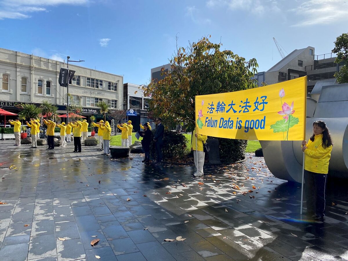 Практикующие Фалуньгун из Новой Зеландии демонстрировали упражнения и знакомили людей с этой практикой совершенствования во время мероприятия в центре Окленда, 27 июня 2020 года. Они также рассказывали им о преследовании последователей Фалуньгун компартией Китая (КПК), которое длится 21 год. Практикующие Фалуньгун выполняют упражнения перед Новым рынком в деловом центре Окленда Мартина, учительница из Франции, использовала строгую изоляцию во время пандемии, чтобы узнать больше о ситуации с правами человека в Китае. Она сказала: «Я прочитала много новостей на французском языке и несколько подробных репортажей, и теперь мне известно, как КПК угрожает религиозным группам.