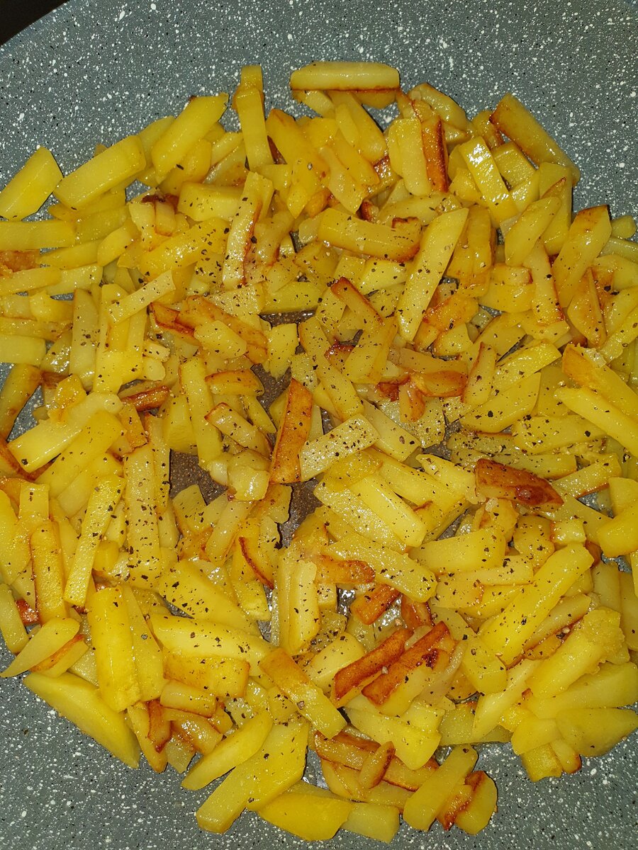 - Перед жаркой обязательно тщательно просушиваем картофель. Нам не нужна лишняя влага.