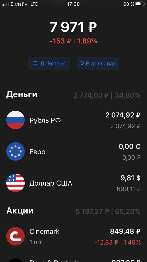 Сегодня пополнил на 2000р. Цель заключается в том, чтобы увеличить на рисковых акциях свой капитал.