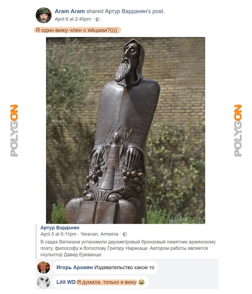 То ли армянский скульптор поиздевался над зрителем, то ли сами армяне - над своими вымышленным "историческим" персонажем, а может это всего лишь сексуальное психическое расстройство целого этноса...