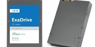 В 2018 году компания Nimbus Data анонсировала твердотельные накопители ExaDrive DC100 в 3,5-дюймовом форм-факторе. Устройства оснащаются интерфейсом SATA 6 Гбит/с или двухпортовым SAS-2 (6 Гбит/с) и впечатляют не только объёмом, который составляет 50 или 100 Тбайт, но и рекомендуемой ценой. Американский вендор планирует начать поставки SSD уже в ближайшее время. Твердотельные накопители Nimbus Data ExaDrive DC100 базируются на микросхемах 3D NAND MLC и обеспечивают скорости последовательного чтения/записи до 500 Мбайт/с. Быстродействие во время работы со случайными блоками достигает 114 тыс. IOPS при чтении и 106 тыс. IOPS при записи. В течение 5-летнего гарантийного срока их можно перезаписать неограниченное число раз. К слову, на перезапись 100-терабайтного SSD на полной скорости уйдёт более двух суток. ExaDrive DC100 рассчитаны на использование в дата-центрах, где их объём позволит увеличить объём хранилища на квадратный метр до рекордных значений. Вполне ожидаемо, что покупка таки