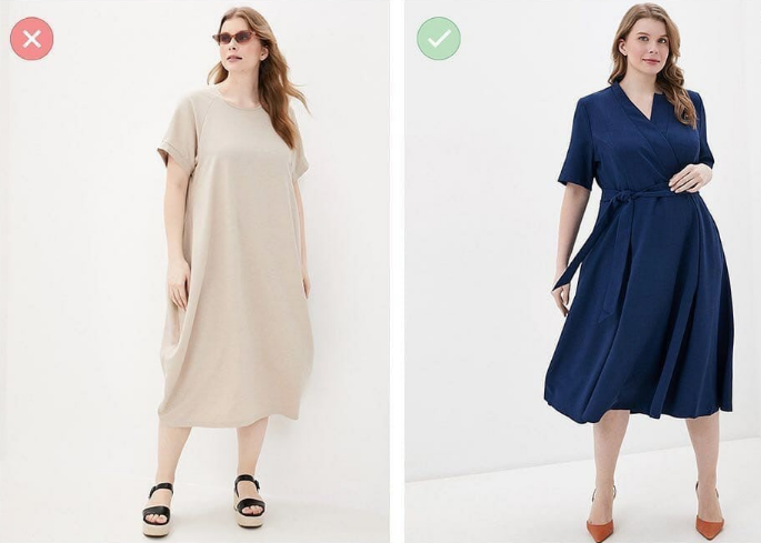 1. Бесформенные платья Если хочется выглядеть стройнее, платья - мешки точно не лучший выбор. Они не скроют объёмы, они сделают фигуру только тучнее. Платья, формирующие силуэт, предпочтительнее. 2. Платья с низкой талией По тому же принципу лучше не выбирать платья с заниженной линией талии. Они искажают пропорции фигуры. Лучше выбирать платья с естественной линией талии и выше. 3. Брюки с низкой посадкой Такие брюки (с низкой посадкой) могут подходить только девушкам, у которых короткое туловище и его нужно удлинить. В остальных случаях лучше выбирать брюки со средней и высокой посадкой. 4. Длинные юбки Юбки в пол красят далеко не всех. Чаще они только утяжеляют фигуру. Чтобы облегчить фигуру, нужно показывать самые тонкие места - запястья, щиколотки. В последнем как раз поможет длина миди. 5. Хлипкий трикотаж Джемперы, кардиганы из хлипкого бесформенного трикотажа подчеркивают все неровности фигуры, придают ей мешковатости. Лучше выбирать вещи плотной вязки, хорошо держащие форму.