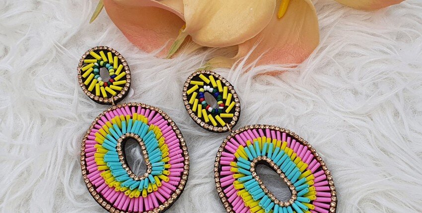 Серьги из магазина Sehuoran Official Store. На выбор у продавца несколько вариантов, я решила взять яркий вариант, который отлично подойдёт на лето.Серьги длиной 10см, ширина 5 см, основа - фетровая ткань, на которой закреплен разноцветный бисер и маленькие камешки.