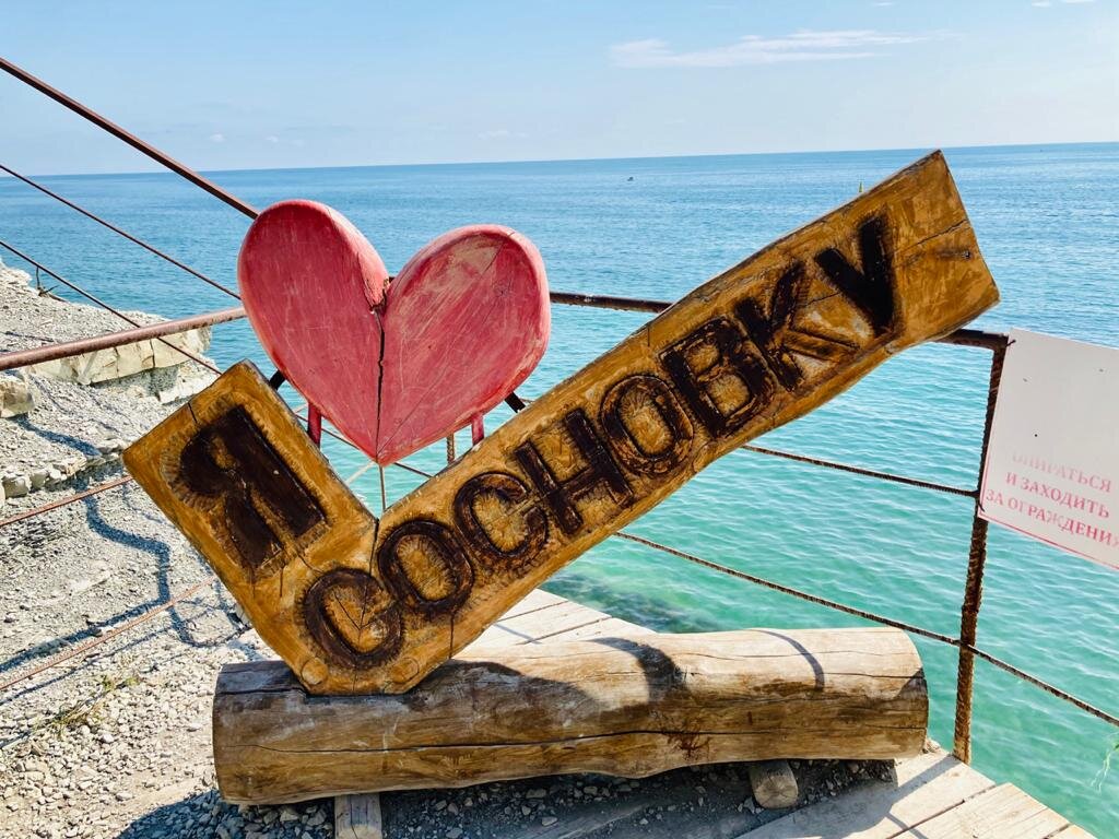 Через полдороги, дойдя до соснового бора, можете подойти к обрыву и полюбоваться безграничной лазурью.