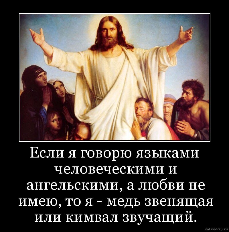 «Если я говорю языками человеческими и ангельскими, а любви не имею, то я — медь звенящая или кимвал звучащий. Если имею дар пророчества, и знаю все тайны, и имею всякое познание и всю веру, так что могу и горы переставлять, а не имею любви, - то я ничто». (13: 1-2)