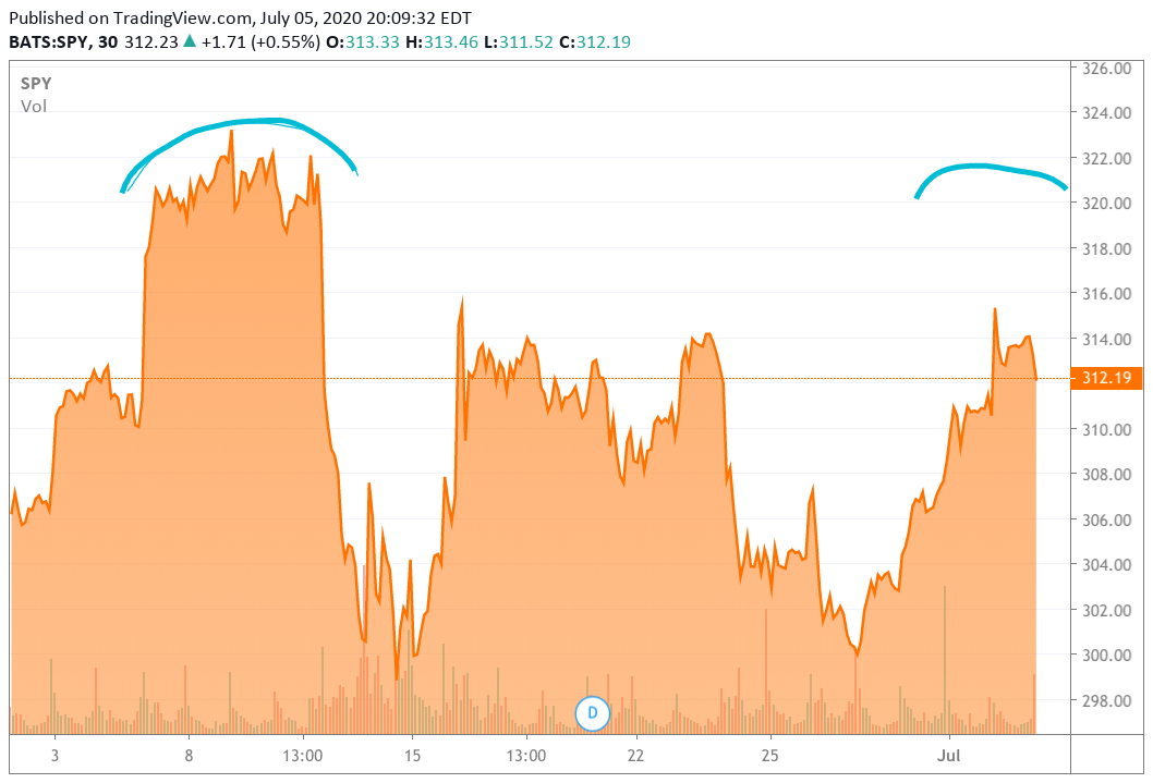 Остерегайтесь двойной вершины, которая образуется. Используйте объявление Баффета и краткосрочное возбуждение от вакцинации/лечения, чтобы сократить позиции.