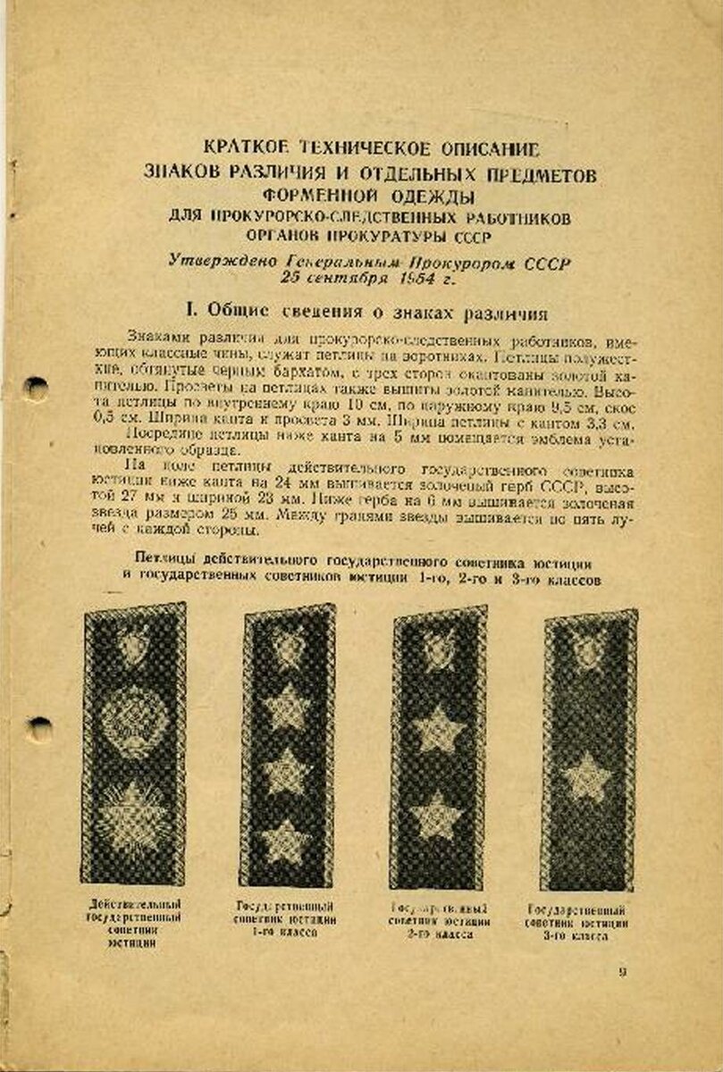 Знаки различия и форменная одежда для прокурорско-следственных работников органов прокуратуры СССР 1954 года