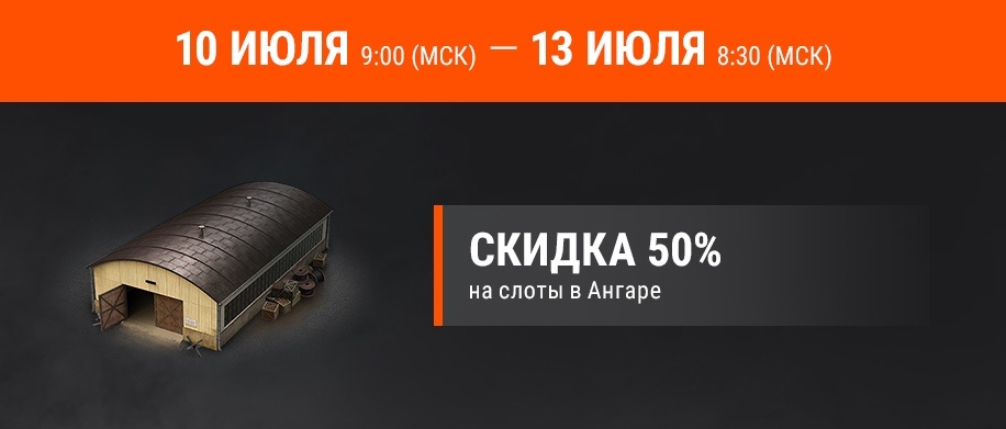 Операция «Кутузов». Скидка и боевые задачи.С 10 июля 09:00 (МСК) по 13 июля 08:30 (МСК) вас ожидает:• Скидка 50% на слоты в Ангаре.