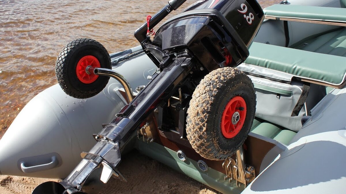 Транцевые колеса нужны, чтобы не тащить лодку до берега на руках с риском повредить здоровье, или волоком с риском повредить судно. Они устанавливаются на транце, после чего Вы в одиночку сможете перемещать лодку весом до 300 кг. Шасси используются как для крупных лодок, так и для небольших, длиной от 280 см. Такая, казалось бы, мелочь значительно продлевает срок эксплуатации: при вытаскивании лодки без транцевых колес Вы рискуете не только порвать баллон, но и сломать транец. Его переустановка обойдется в энную сумму. Кроме того, транцевые колеса дают Вам больше независимости: Вы можете отправиться на рыбалку в любой момент без напарника. Стандартный комплект — лодку 3.6 метров и мотор — проблематично перемещать другим образом. В минусы можно записать разве что дополнительные хлопоты во время сборов: про колеса необходимо помнить, брать их с собой на рыбалку, а также не забывать опускать и поднимать шосси при выходе на воду и причаливании к берегу соответственно.