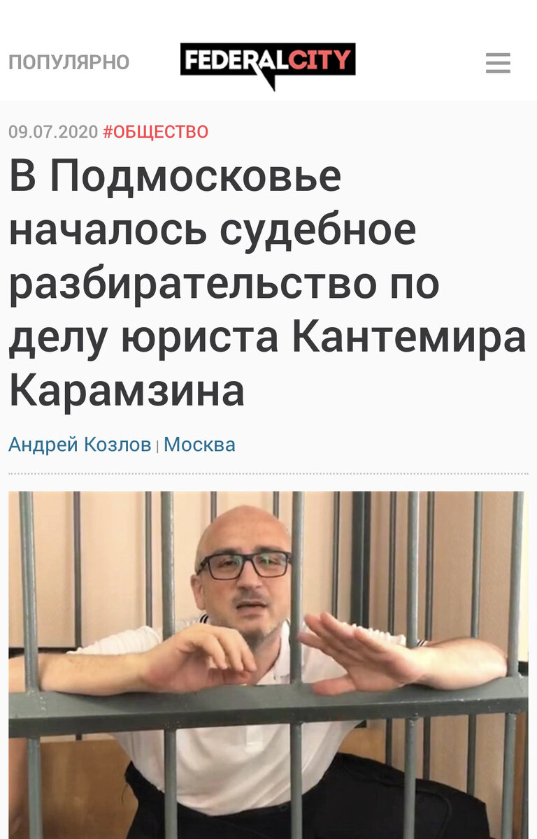 09.07.2020 #ОБЩЕСТВО В Подмосковье началось судебное разбирательство по делу юриста Кантемира Карамзина Андрей Козлов | Москва Кантемир Карамзин на заседании в суде 8 июля. Источник: стоп-кадр видеозаписи В Сергиево-Посадском городском суде 8 июля в рамках начавшегося судебного разбирательства по делу № 1-448/2020 состоялось заседание по вопросу о продлении меры пресечения юристу Кантемиру Карамзину. Карамзин был арестован в апреле 2019 года в связи с обвинениями в мошенничестве, якобы совершенном в 2007 году, и все эти месяцы следствия находился в изоляторе. Истинной причиной ареста, считает юрист, стало стремление заставить его пойти на попятную в арбитражном разбирательстве на миллиарды рублей. Судья продлила арест до 25 декабря 2020 года. К прежним обвинениям, не признанным Карамзиным, за время следствия добавились новые статьи, которые, по мнению защиты и самого обвиняемого, "выросли из провокаций". "Цена вопроса" ИА FederalCity ранее сообщало, что уголовное дело против Ка