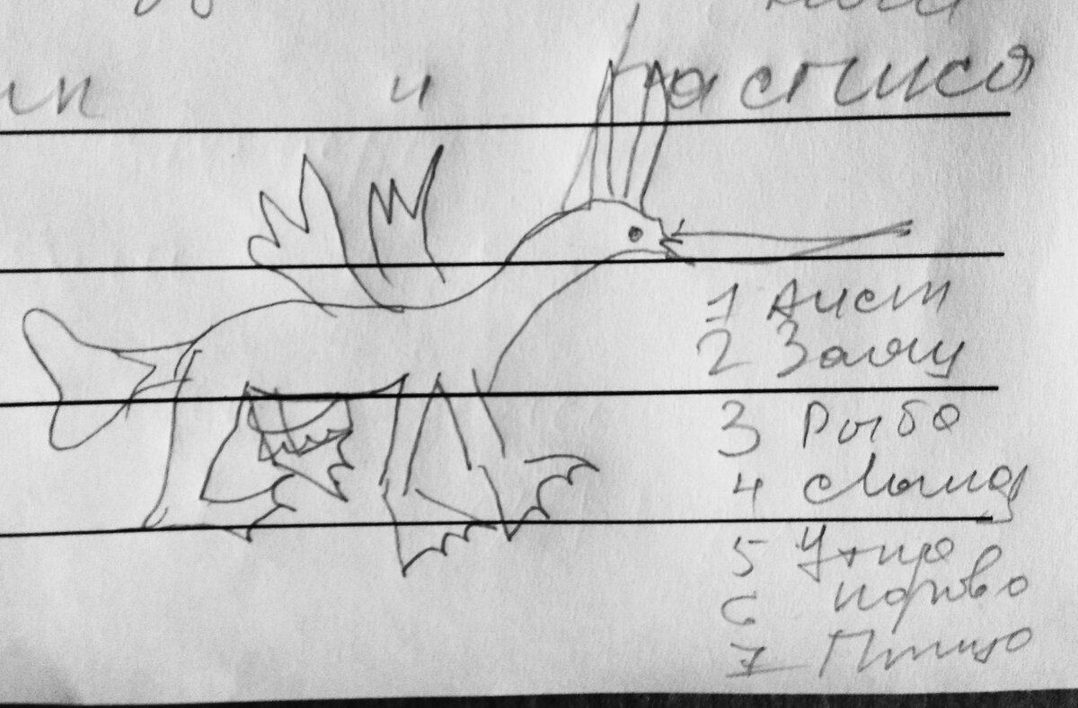 Я часто выдумываю велосипеды. Так я называю упражнения или целые системы подачи информации сыну, которые придумываю сама, а потом выясняю, что они уже давно придуманы, и даже научно обоснованы какими-то учёными. Что подтверждает, что работающие вещи приходят в головы многим людям. Итак, придумываю велосипеды. Сейчас меньше, потому что сын научился работать с учебниками. И мы просто выполняем упражнения, которые создали профессионалы. А раньше, когда всё было очень грустно в плане обучения, я искала различные способы, чтобы разговаривать с сыном. Любые. Например рисовать на его глазах что-нибудь и спрашивать, что это. Таким образом он выучил части тела и много другое. Рисую я не очень, но это не мешало сыну понять, что я там изображаю. Но вот однажды вечером я нарисовала зверя, сын узнал. А потом я пририсовала ему крылья, клюв и другие части тела, которые принадлежали другим животным. В начале сын очень испугался. Не шучу. Очень. Но потом он начал говорить, что такого не быва