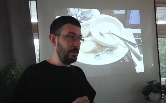 Вкусовое переживание я получаю в полной мере, но просто не получаю лишних килограммов, как оказалось. - А где самые вкусные в Москве? - Круассаны? - Да. - В "Волконском". Иду я значит, мимо Пончиковой, я просто беру и просто его откусываю, и все. Меня... Совесть меня не мучает, я не страдаю. Я не знаю, что думают люди, которые работают в этой Пончиковой, потому что когда они приходят убирать со стола, они не могут поверить, что кто-то им вот это оставил. Но я просто психологически вот прям, переключил этот тумблер, все, не переживай. И заклеил скотчем, чтобы больше никто его обратно не мог передернуть. И оказалось, что это прекрасно работает. А в завершении я хотел бы привести такую маленькую метафору - представьте себе, что еда - это ветер, а живот - это парус.