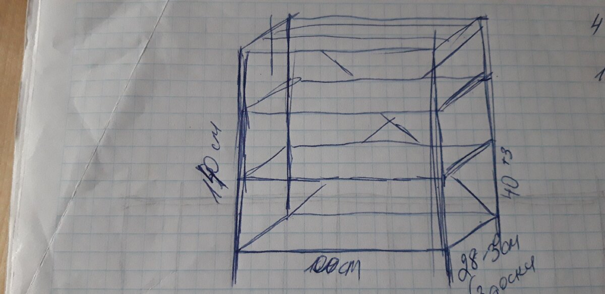 От строительства дома у нас остались отличные материалы: половые доски, вагонка, бруски. Так почему бы их не использовать с пользой... Нам нужен стеллаж, что бы хранить вещи . Итак первое что было сделано - примерный макет Нам понадобится 12 половых досок длинной 1.20 см. Клей, рулетка, шуруповерт, шурупы. Ширина полки будет в 3 доски. Скрепляем доски клеем и фиксируем зажимами. Ждем пока высохнет клей чуть больше 30 минут. И прикрепляем бруски к краям наших полок снизу Готовим боковые доски по нужным размерам - у нас высота 1,60см Вот что у нас получилось Начинаем сборку. Сверлим отверстия сбоку и скрепляем полки и боковые части мебельными болтами. Идеальный стеллаж.