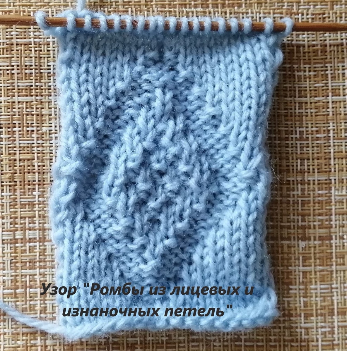 10-й и 22-й ряды - 4 лицевые, 3 изнаночные, 3 лицевые, 3 изнаночные, 3 лицевые и т. д. Последние 4 петли лицевые и кромочная.