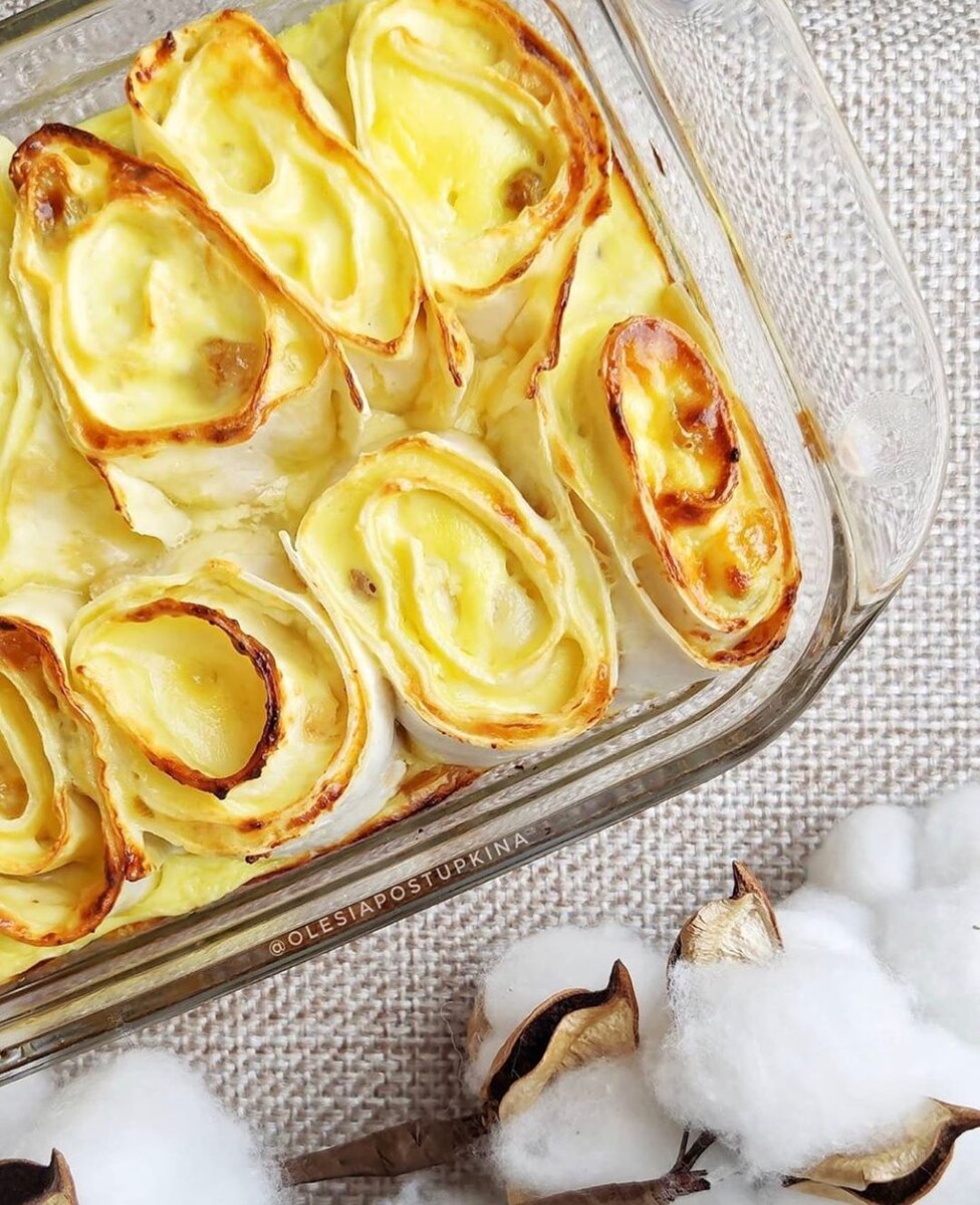 ХРУСТЯЩИЙ ВЕРХ И НЕЖНОЕ СУФЛЕ ВНУТРИ Выход: 460г. КБЖУ на 100г.: 186/12.4/5.3/21.6. Ингредиенты: - 40г изюма - 200г 5% творога - 100г 3.2% йогурта - 100г лаваша - 2 яйца - сахарозаменитель, у меня Пребиосвит ru_prebiosweet - ванилин. Приготовление: Делаем заливку из 1 яйца, сахарозаменителя (2 мерные ложечки) и йогурта. Делаем начинку из творога, 1 яйца, изюма (предварительно замачиваем в кипятке), сахарозаменителя (4 мерные ложечки). Намазываем начинку на лаваш, скручиваем в рулет, разрезаем как роллы, выкладываем в форму и заливаем. Выпекаем до румяной корочки на 180° ~25мин