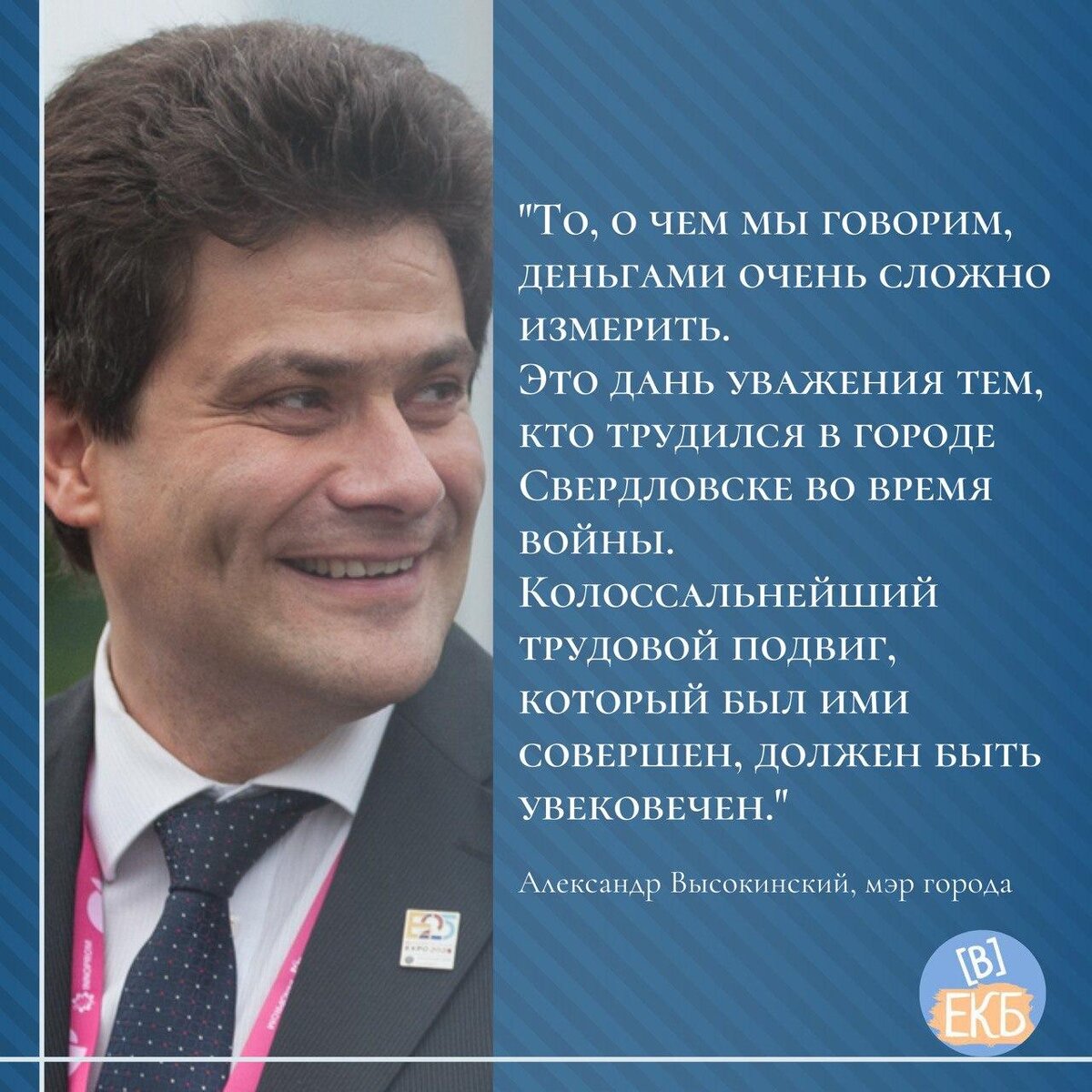 Что по поводу присвоения звания Города трудовой доблести Екатеринбургу думает Александр Высокинский? Нам кажется, его мнение очень хорошо можно понять из цитаты ниже!