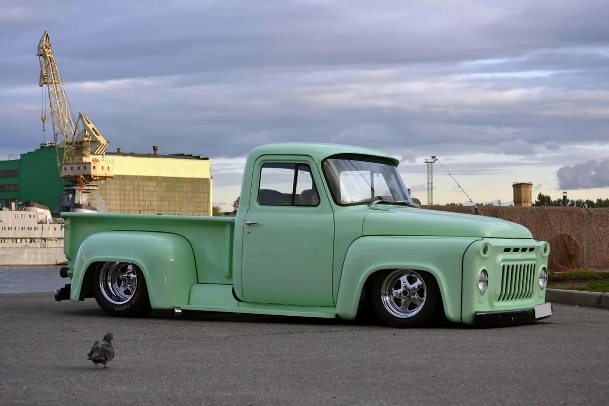Я считаю что этот проект прекрасный образец авто культуры, с какой стороны не посмотри он прекрасен во всем. И так кабина Газ 53 была переделана под образ автомобиля который был в голове у владельца, после была установлена на раму от Chevrolet Malibu 1978 года через подушки от Уаза. Крылья брызговики и капот были также доработаны, а кузов и задние крылья были сделаны, так сказать, с чистого листа. Естественно что все не могло получиться с первого раза. Так что много чего было переработано не раз и не два. Но результат достойный. Подвеска так же была позаимствована от Malibu и оборудована простой двухконнтурной пневмоподвеской а амортизаторы в круг переднии от Волги 3110. Двигатель small block V8 от Chevrolet Caprice 1991 года. Остальные составляющие такие как радиаторы, вентиляторы и т.д было заимствовано у Уазов и Газов. Покраска авто затянулась аж на два года но опять же результат налицо. В такой же цвет красили Волгу газ- 21 в 50-е года. Стилистика выдержана и авто выглядит к