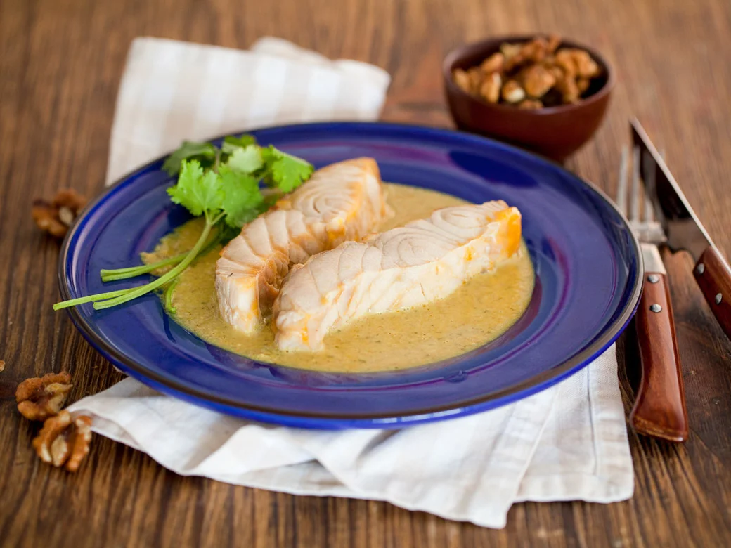 Всем привет!! Когда на улице лето и жара, то ничего тяжелого есть не хочется. В таком случае отварная рыбка это то, что надо, а что бы было посытнее добавим ореховый соус. Блюдо готовится быстро и не сложно. Поехали!!! Ингредиенты: