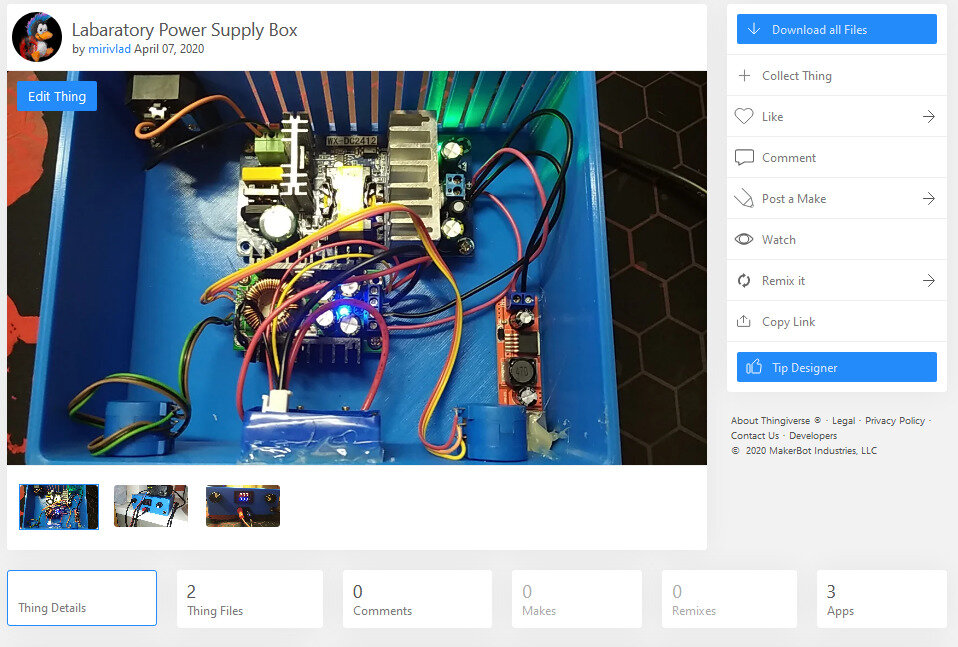 Ну что, запостил свою первую удачную модель для 3D печати на Thingiverse. Делал её во Fusion 360 для лабораторного блока питания из компонентов с алиэкспресс. Блок у меня используется как для питания usb-устройств (типа зарядки смартфона или электронной сигареты, или USB-паяльника), так и для запуска всяких самоделок. Ссылка на корпус и STL-файлы: https://www.thingiverse.com/thing:4267529 Если будет нужно — могу привести список модулей и в каких магазинах брал, а так же накидать схему подключения.