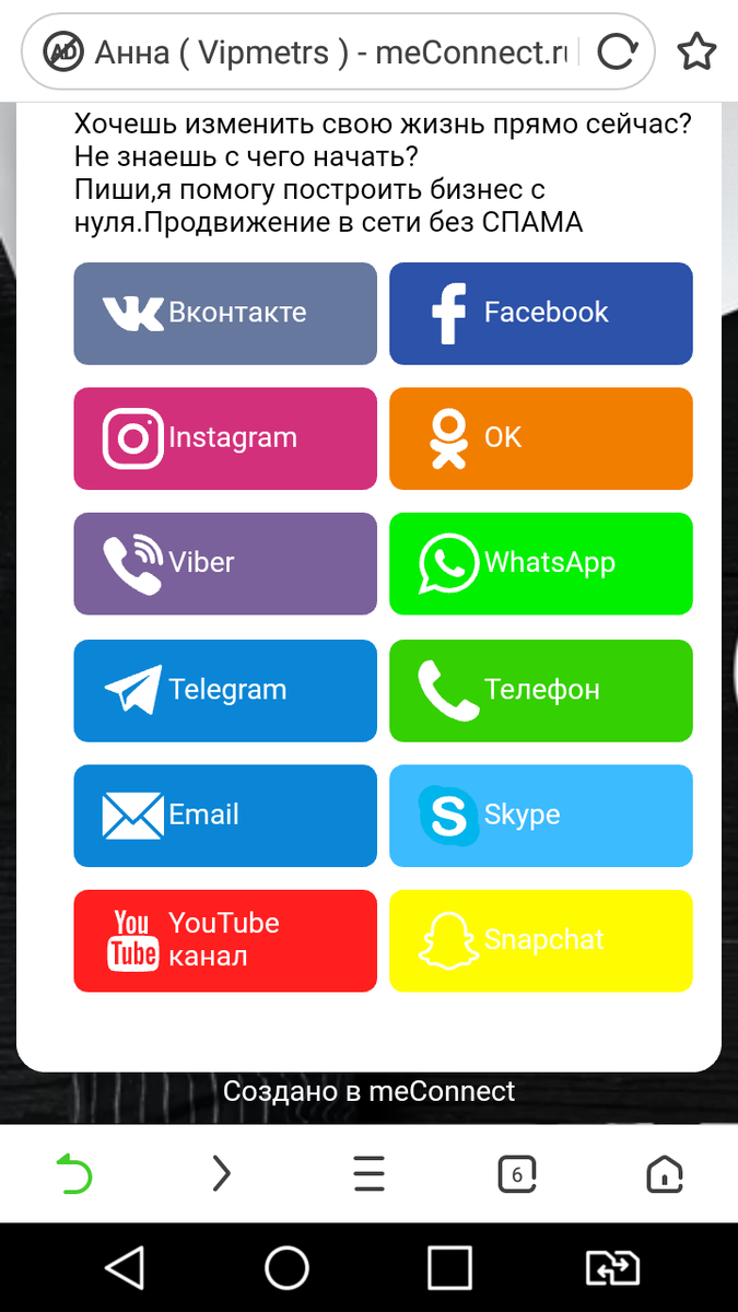 #полезности Очень удобный сервис Meconnect.ru, он завоевал популярность и технично переманивает клиентов из других сервисов. В чем фишка? Все бесплатно!!! Итак, что же предлагает этот сервис: Это одна ссылка на все сервисы и соц.сети. Через него можно подключить: ✅мессенджеры, как: Телефон, Whatsapp, Viber, Telegram, Skype, Twitter, Email ✅социальные сети: Вконтакте, Facebook, Одноклассники, YouTube, Vimeo, Instagram, Snapchat, LinkedIn, Pinterest ✅можно не только добавить адрес, но и показать его на Яндекс.Карте или Google.Maps 💥градиент цветного фона поменять фото фона указать собственную ссылку можно добавить профильные сети: iTunes, GitHub, Reddit, BeHance 💥есть поддержка, отвечают в режиме онлайн. https://meconnect.ru/Vipmetrs ______________ #АннаМатросова #vip_metrs #для_бизнеса #АтомныйSMM #ВсесвоиSMM