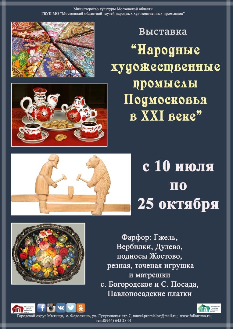 Сегодня в 15.00 в Московском областном музее народных художественных промыслов состоится открытие выставки «Народные художественные промыслы Подмосковья в ХХI веке». В связи со сложившейся обстановкой мероприятие пройдет в онлайн-формате на страницах соцсетей учреждения.