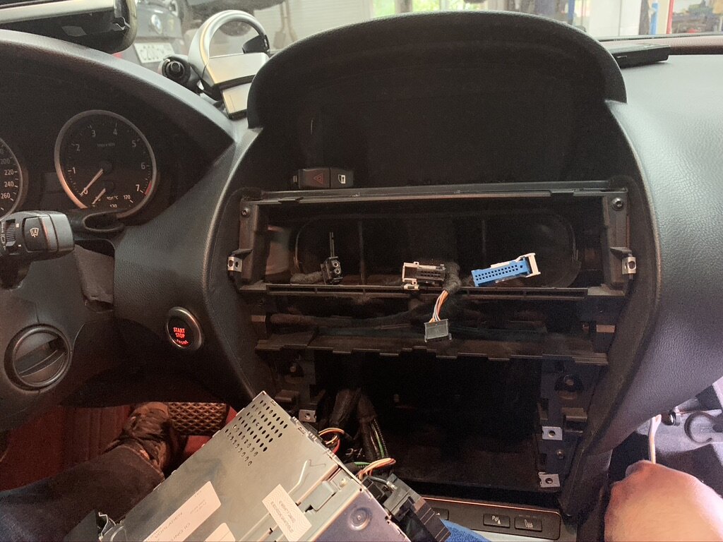 Подключили аналоговый вход AUX в БМВ шестой серии кабриолет 2005 года выпуска со штатной системой CCC. При подключении использовались оригинальные разъёмы и провода, произвели кодирование системы мультимедиа. К сожалению система устанавливаемая на автомобилях прошлого поколения имеет очень узкий режим настроек и минимальное количество дополнительного оборудования. Решением подключения внешнего источника звука любого телефона или плейера в данной системе является аналоговый Вход AUX. На многих автомобилях он устанавливался на заводе, а в некоторых автомобилях он был не предусмотрен. После дооснащение появилась возможность через провод джек и разуме для наушников на смартфоне проигрывать музыку, аудиокниги через штатное головное устройство без потери качества звучания. Данное дооснащение занимает около двух часов и не требует большого разбора элементов салона.
