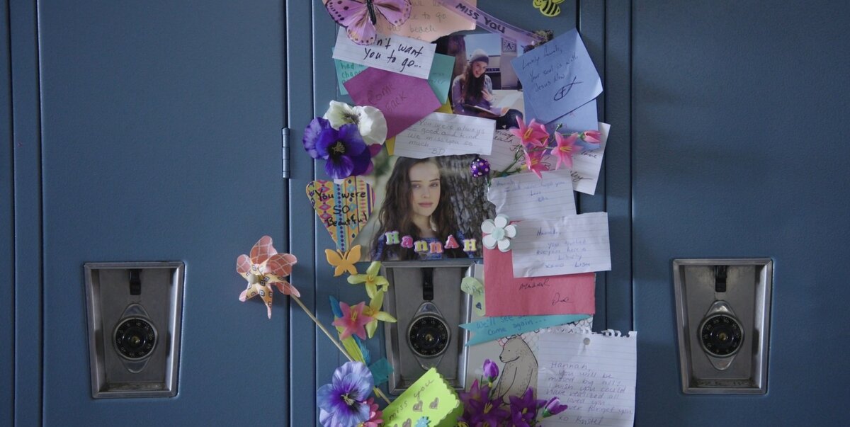 Действие происходит в двух временных пластах - настоящем времени и в прошлом, когда Ханна была еще жива. Визуально это выделяется - эпизоды из прошлого сделаны в теплых и солнечных тонах, когда как в реальности все выглядит как будто в школе отключили отопление. Ну и конечно сценаристы в первом эпизоде не забыли уронить главного героя с велосипеда, чтобы у него остался шрам на лбу - это тоже здорово помогает ориентироваться во времени (не уверен, что в книге было сделано именно так - это нюансы визуального искусства).