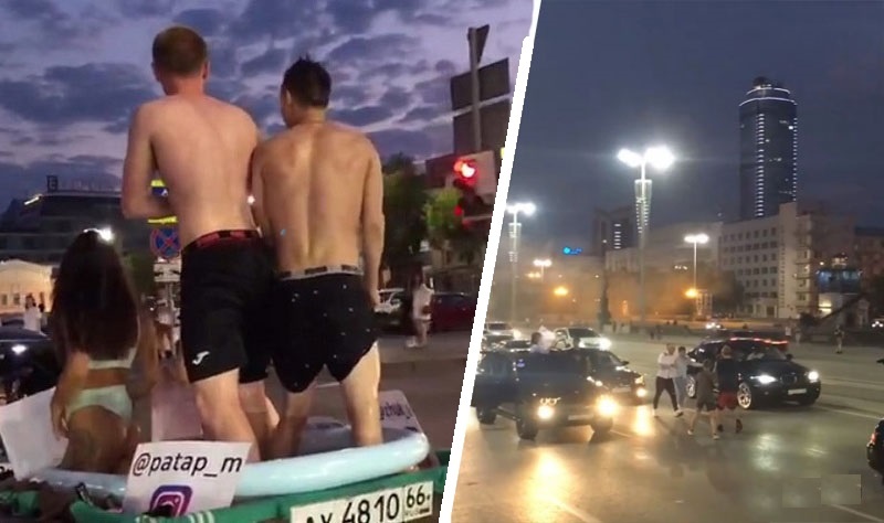 Из бассейна в телеге — на проезжую часть: екатеринбуржцы устроили пляски на дороге и создали пробку в центре города