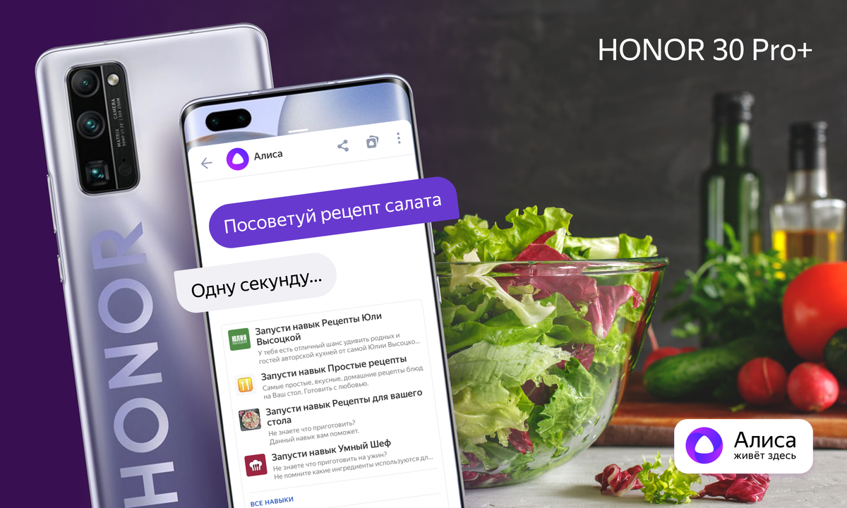 Недавно бренд HONOR представил новый флагманский смартфон HONOR 30 Pro+. Мы не будем рассказывать про основную камеру в 50 Мп, OLED-экран с разрешением 2340x1080 пикселей и другие его особенности, для которых есть официальный сайт. Сегодня мы сфокусируемся на том, что в первую очередь интересно читателям нашего канала, — на глубокой интеграции Алисы. Голосовой помощник Яндекса теперь не просто