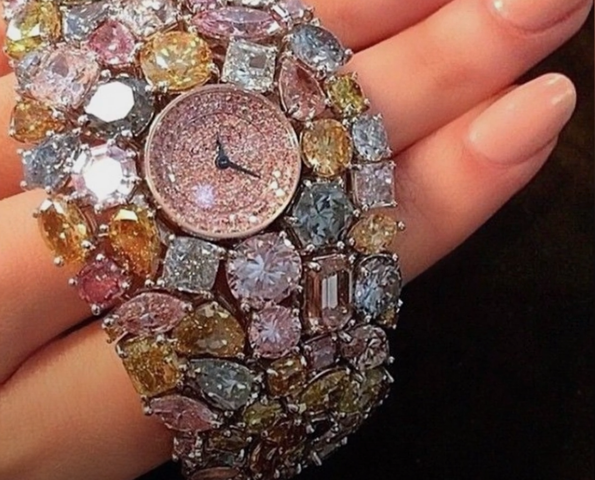 Самая дорогая модель от Graff Diamonds поражает своим бриллиантовым разнообразием, примерный вес драгоценных камней в часах равен 110 каратам. Часы украшены бриллиантами зелёного, ярко-жёлтого, тёмного и светло-синего, оранжевого, розового. Также установлены камни с огранкой в виде сердечка, груши, круга, подушечки и глаза. Браслет выполнен из платины, со специальной застёжкой, которую не видно при закрытии браслета, а расстегнуть замок можно, нажав на специальный камень. Graff Diamonds Hallucination женский аксессуар премиальной категории, для которых сам Лоренс Графф, глава компании, выделил драгоценности из собственной коллекции Стоимость этих часов оценена в 55 млн. долларов (3,8 миллиарда рублей). Впервые они были продемонстрированы на выставке Baselworld в 2014 году.