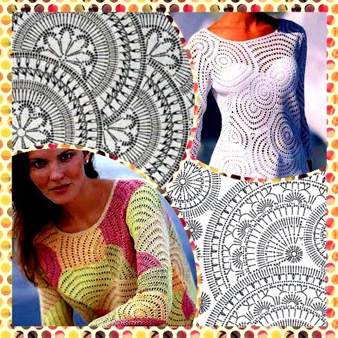 Здравствуйте, мои уважаемые читатели! Видимо, после спиральных салфеток тема кругов никак меня не оставляет (или я ее?😊). И как-то незаметно я свернула на модели одежды, которые такие круговые элементы содержат - не только филейные, меня всякие интересуют. Но начать хочу все же с филейных, а потом как пойдет, моделей много в сети, какие-то нравятся больше, какие-о меньше, я приведу в публикации сегодняшней те, которые на меня произвели впечатление.