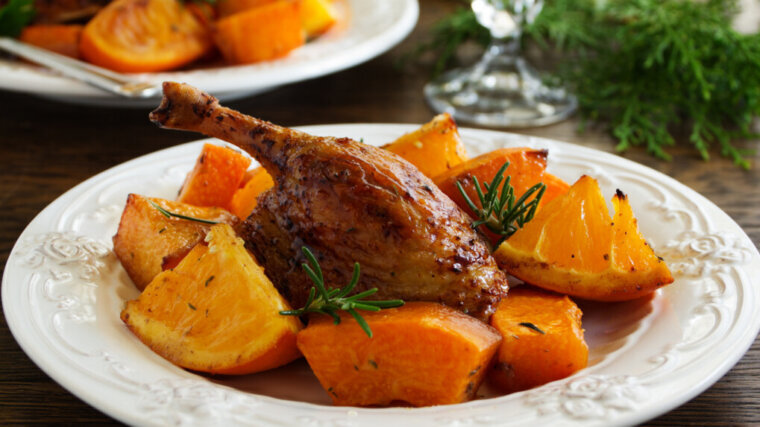 Утка - это благородное мясо, но чрезвычайно недооцененное на кухонных столах. Хотя он появляется на них веками, в настоящее время мы покупаем очень мало. Это связано с высокой ценой на утку и верой в то, что ее мясо трудно готовить. Стоит попробовать интересные рецепты, ведь жареная утка с яблоками, мандарином или в рукаве впечатляет своим отличительным вкусом. У утки есть мясо, которое не только ароматное и очень сочное, но и ценное. В 100 г мяса утки содержится до 28 г белка. Кроме того, мы можем найти витамины B - B1, B2, B6, B3, витамины A, E и минералы: калий, натрий, магний, фосфор, железо, цинк, кальций. Также существует недостаток ненасыщенных жирных кислот, которые положительно влияют на поддержание нормального уровня холестерина в крови и защищают сердце, а также необходимы для эффективной работы мозга и здорового зрения. Тем не менее, люди, которые заботятся о линии, должны быть осторожны с этим мясом, потому что утка в 100 г дает 30 ккал. Вы можете уменьшить количество ка