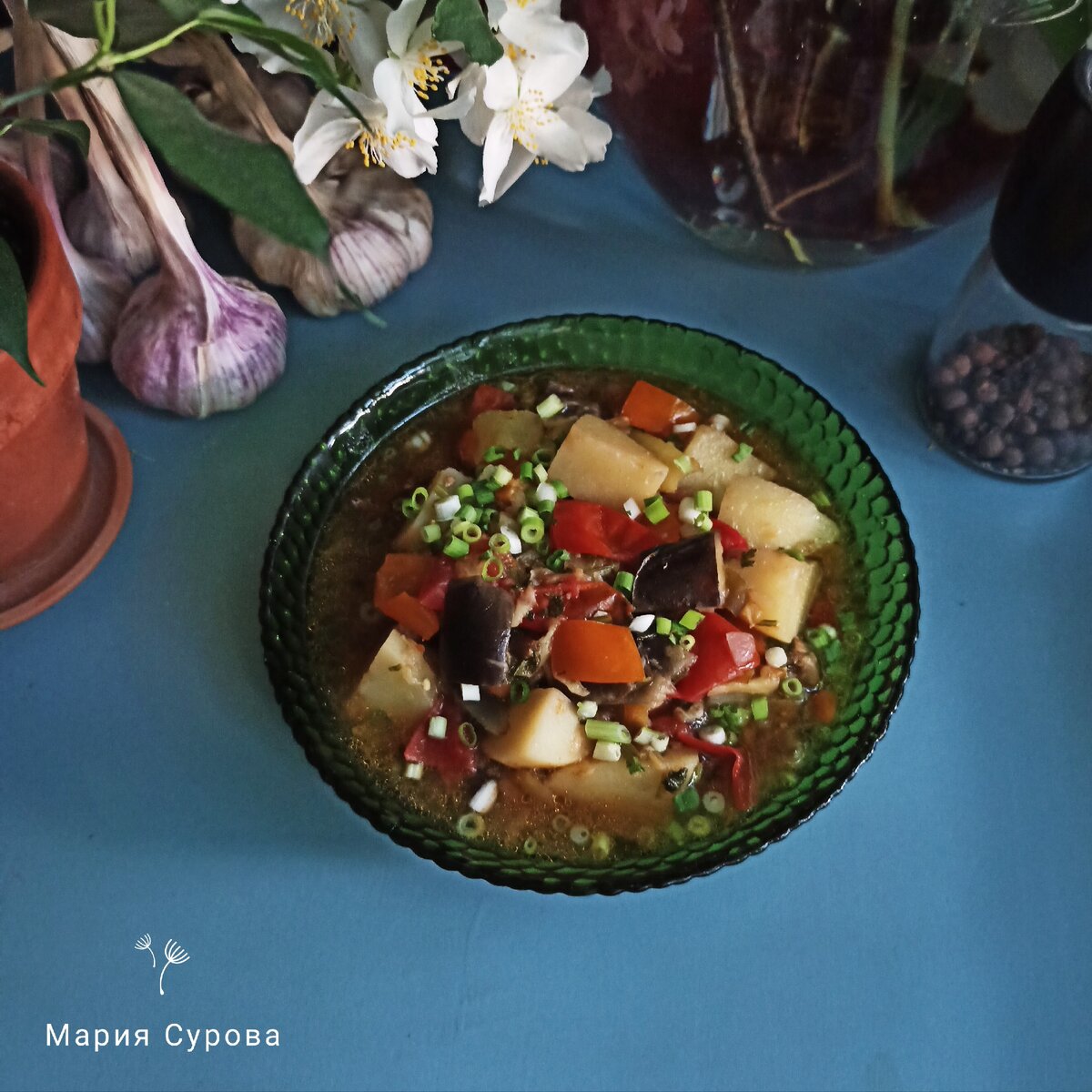 Овощное рагу с баклажанами и картошкой.