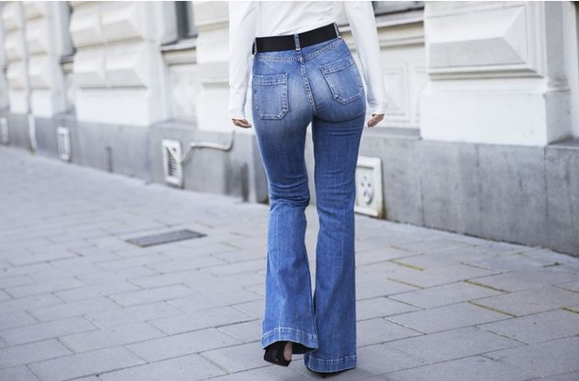 Одна из самых популярных моделей джинсов-клеш – это джинсы с высокой талией. Правильно подобранная форма штанин – расклешенные к низу или от бедра – может сделать вашу фигуру визуально стройнее за счет удлинения силуэта. Используйте этот эффект по максимуму и наденьте с джинсами лодочки на шпильке. Как правило, данную модель подбирают такой длины, чтобы они закрывали каблук, оставляя на виду лишь носок. Этот прием делает линию ног невероятно длинной.