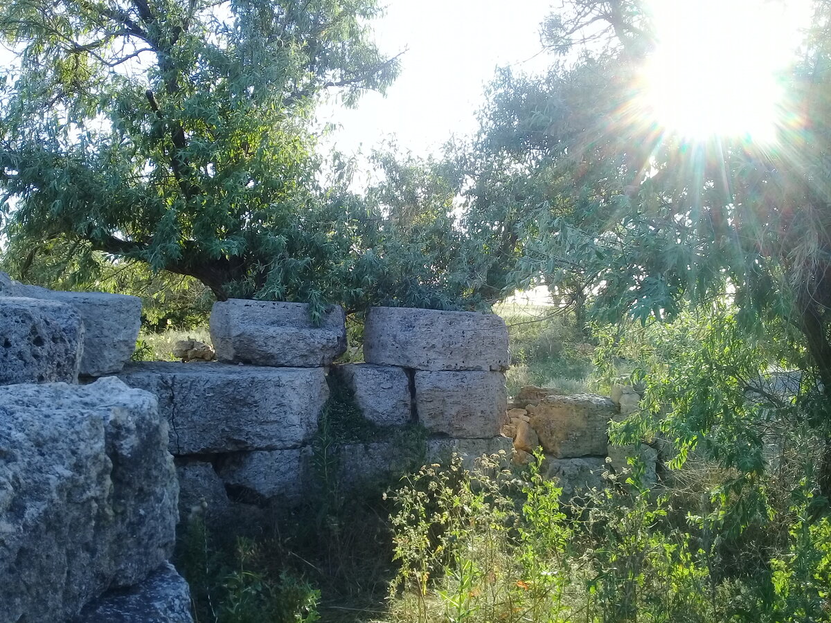 Здравствуйте, друзья! В северо-западной части Крымского полуострова, у села Северное Черноморского района, на морском побережье Каркинитского залива есть древнегреческое поселение, всё заросшее деревьями, очень похожими на маслины. Городище так и называется, "Маслины".