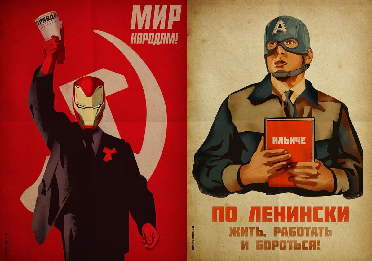 Так, например, Тони Старк стал новым Лениным, а Хеллбой — простым работягой с серпом и молотом.