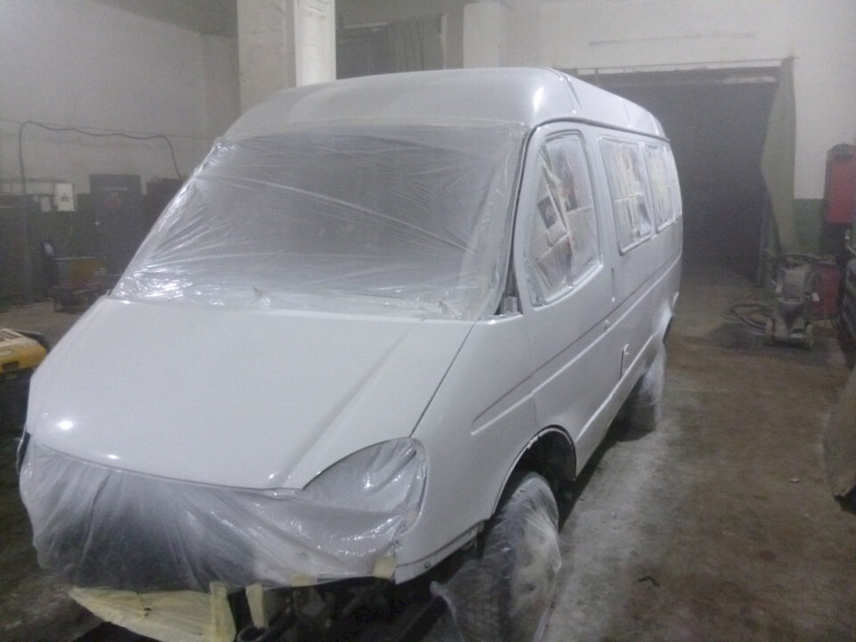 Работы над автомобилем начались с его покраски, после которой желтая маршрутка превратилась в белую пассажирскую Газель на 7 комфортных (в сравнении с 12-ти местным исполнением маршрутки) мест.