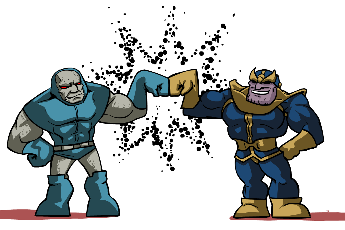 Танос и Дарксайд Оба персонажа являются представителями древних и могущественный рас. В случае Дарксайда это Новые Боги, у Таноса — Вечные Титаны. Тот И Другой герой владеет сверхчеловеческой силой, невообразимым разумом, телепатией, телекинезом также жаждой завоевания мира. Обоих почти нереально уничтожить. Оба этих персонажа являются основными противниками наиболее популярных супергероических команд во вселенных комиксах. Первое полноценное возникновение Дарксайда помечается февралём 1971 годы. Его автор — Джек Кёрби, ключевая персона в мире супергеройских комиксов. С этапа возникновения известность Дарксайда никак не упала — уже сорок лет Дарксайд остаётся основным антоганистом мира DC. Первое появления таноса было в комиксе Invinsible Iron Man No55 в феврале 73, практически 3 года спустя после Дарксайда. Равно Как также собственный противник с DC, Танос стремительно приобрел известность также, стал основанным антагонистом вселенной Marvel. Автор Таноса Джим Старлин ни отрица