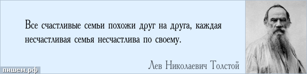 Все счастливые семьи похожи друг на друга, каждая несчастливая семья несчастлива по-своему. Это всё вытекает из того что ко всем счастливым семьям можно подобрать одно описание. Эта где нет конфликтов, царит любовь и радость, поддержка и взаимопонимание. Конечно и эти семьи имеют различия. Например строй в семье, кому-то идеально если главный мужчина, кому-то по душе матриархат, где-то равноправие, но все эти семьи счастливы. Семейное счастье подобно хрустальной вазе - каждая ссора или недопонимание оставляет царапинки и трещины, если вместе их сразу же не заделывать можно остаться с обычными осколками. Все мы имеем представление о счастливой и не счастливой семье. В одной люди живут душа в душу, вместе планируют времяпровождения, делают сюрпризы, помогают, поддерживают, идут на уступки-идилия. А в другой может не быть только одного пункта и всё покатится по наклонной, вместо помощи с чем-то упрёки, угрозы, частые скандалы и как результат - разбитая ваза. Многие согласны с этим выр