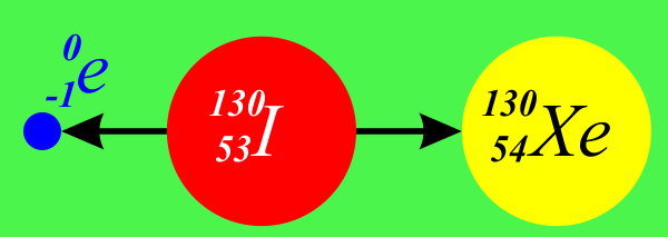 Вычислите число ядер I(130,53), распавшихся в течение первых суток, если первоначальное число ядер N0=10^22. // Ремизов А.Н., Максина А.Г. "Сборник задач по медицинской и биологической физике", 2001 г. https://bookmix.ru/bookprice.phtml?id=84492 Список решённых на данный момент задач из сборника Ремизова находится тут Рисунок. Схема распада ядра изотопа йода-130. Ядро данного элемента при распада испускает электрон и превращается в ксенон.